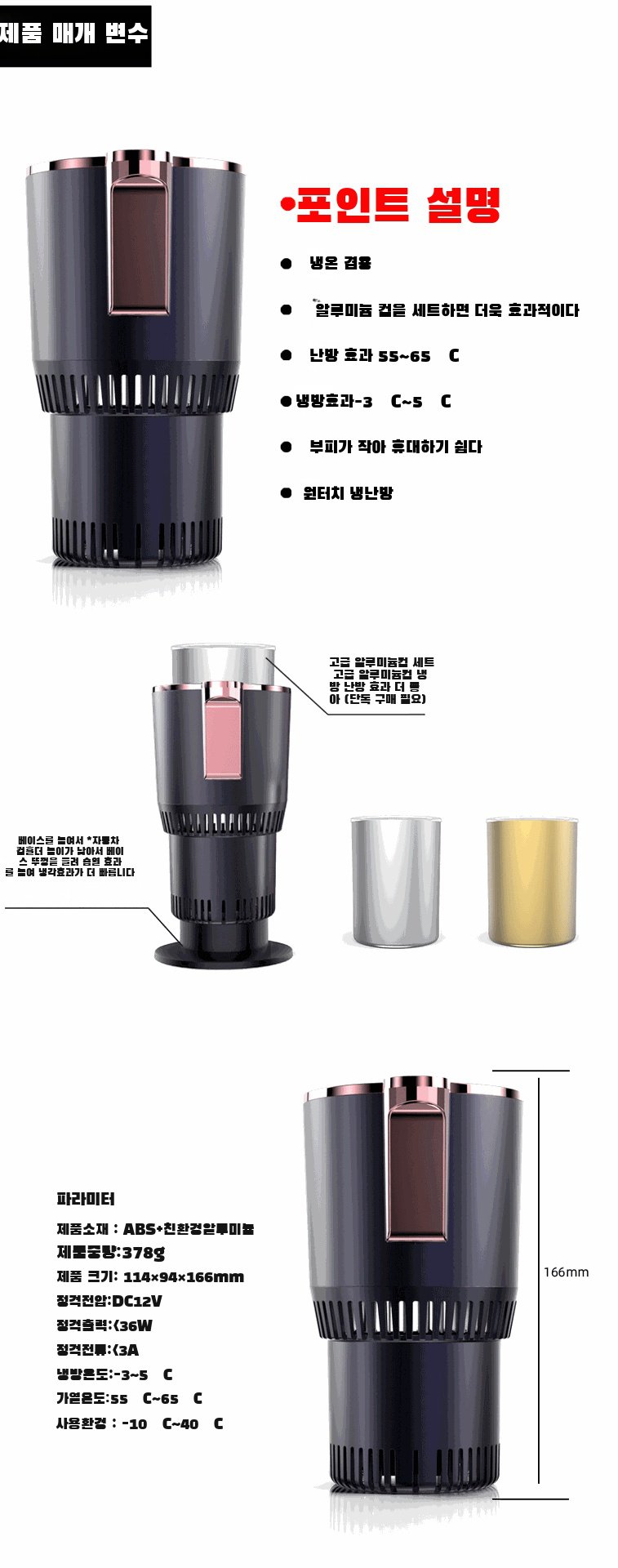 차량용 냉온컵 급속냉동 가열 12V 전기온열 비커 온도 표시 다기능 자동차 온유컵